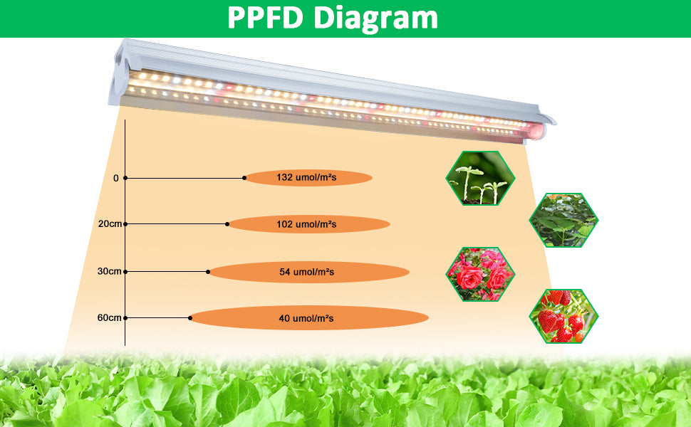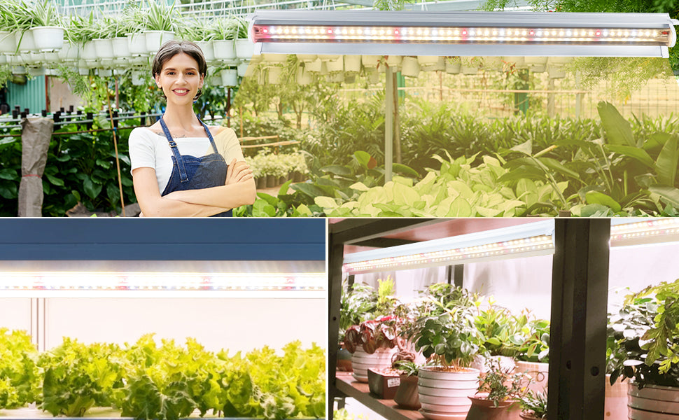 - Daisy-chain function: you can connect up to 6 pieces of T5 plant light together by connecting cables or plugs. Easy to use and manage. It is suitable for plant shelves, plant tents, hydroponic cultivation rooms, greenhouses, etc.