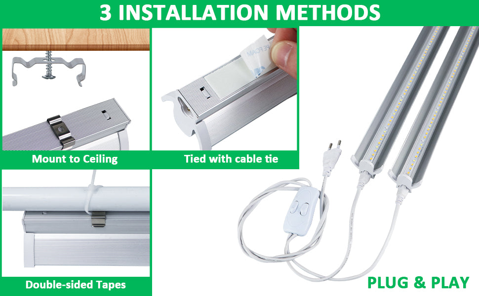- Easy installation: attach the T5 grow light according to the installation steps with screws, double-sided adhesive, or plastic cable ties.