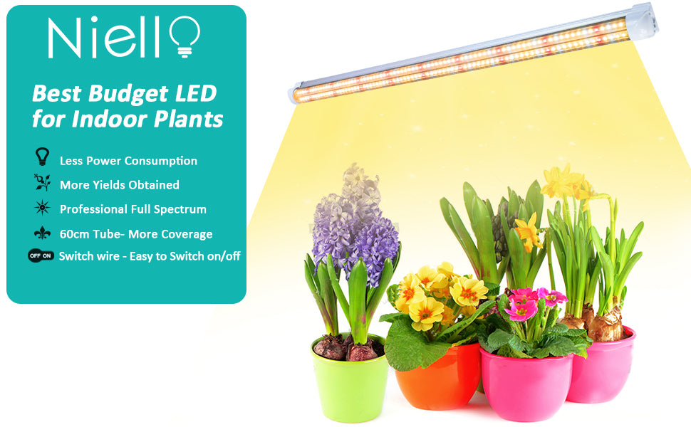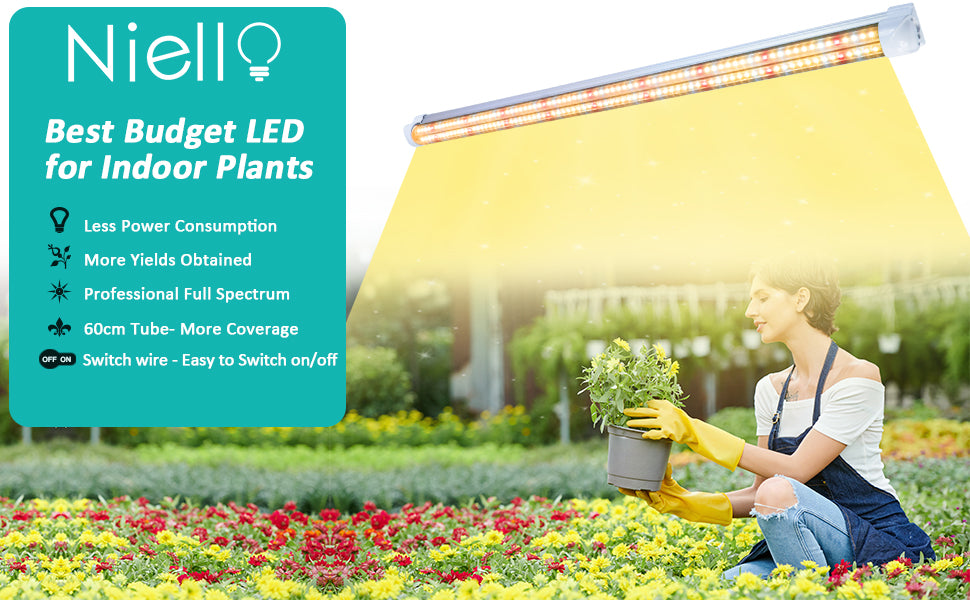 - 【Full-spectrum grows light strip】: Niello plant light for indoor plants provides light for plant sowing, the vegetation, and flowering cycle, especially blue and red light. 6500 K white LED beads in each strip really reach the full spectrum of 380-800 nm. We offer the most sensible growth light wave based on the absorption ratio of the plant.